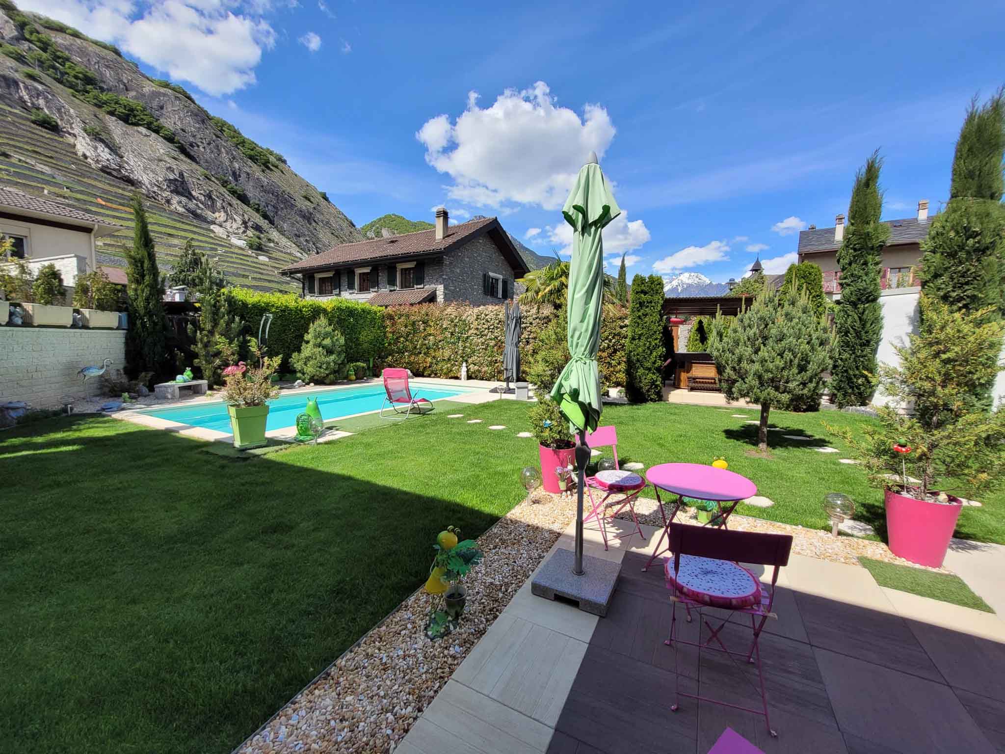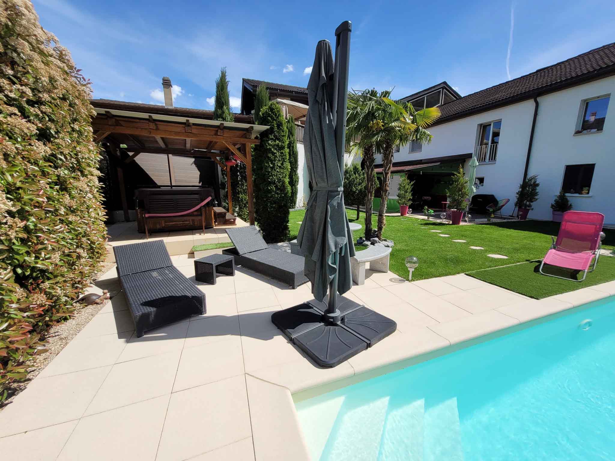 - Terrasse ombragée donnant sur un splendide jardin avec piscine et jaccuzi